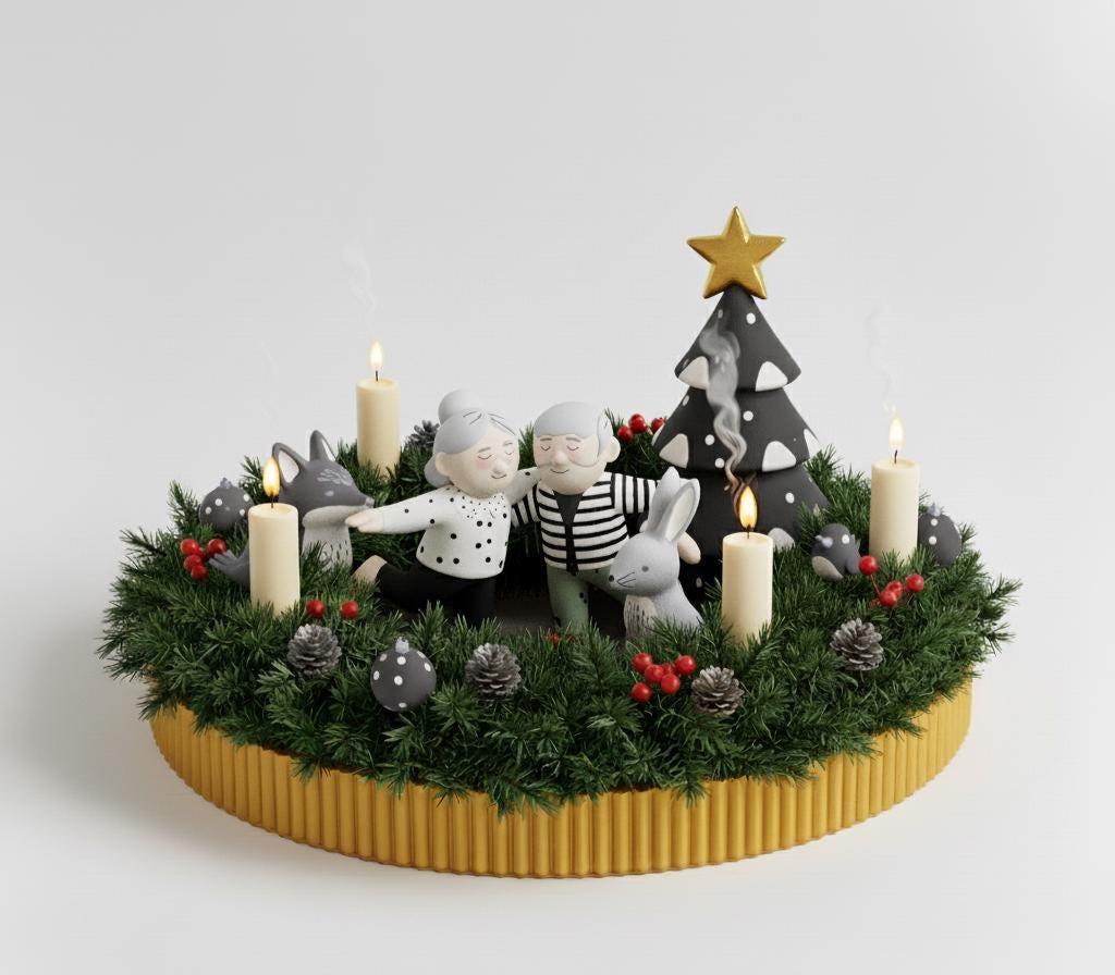 Advent plate with hand-painted 3D figures – sustainable winter decoration made of PLA and Raysin