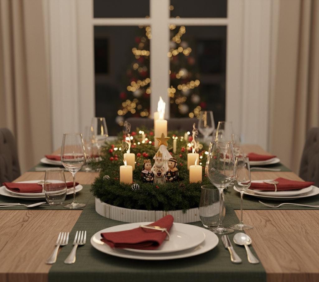 The plate can be individually decorated, e.g., with a fir wreath, branches, or candles (not included).