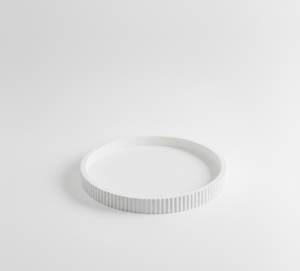 The plate (Ø approx. 25 cm) is cast from high-quality Raysin – a natural, matt white material with a noble stone look.