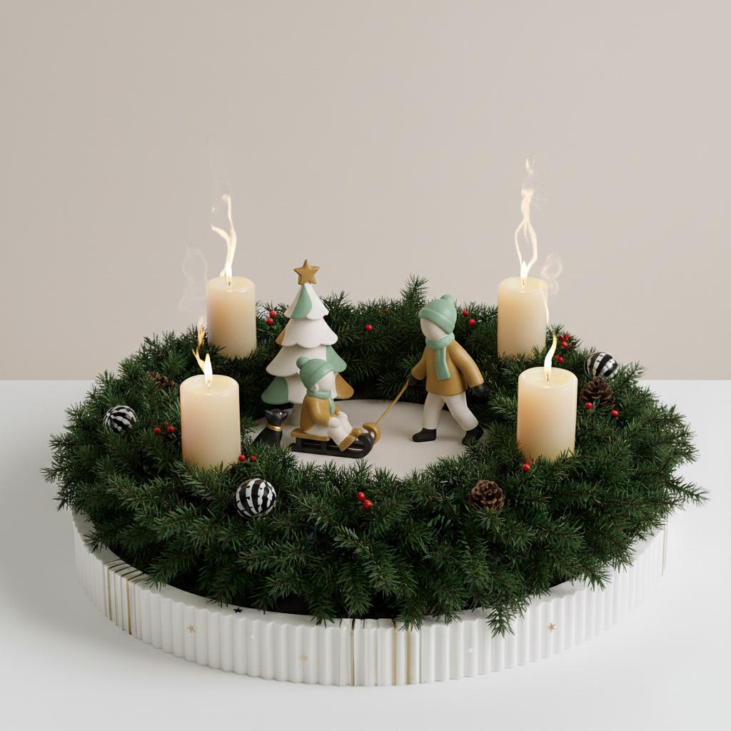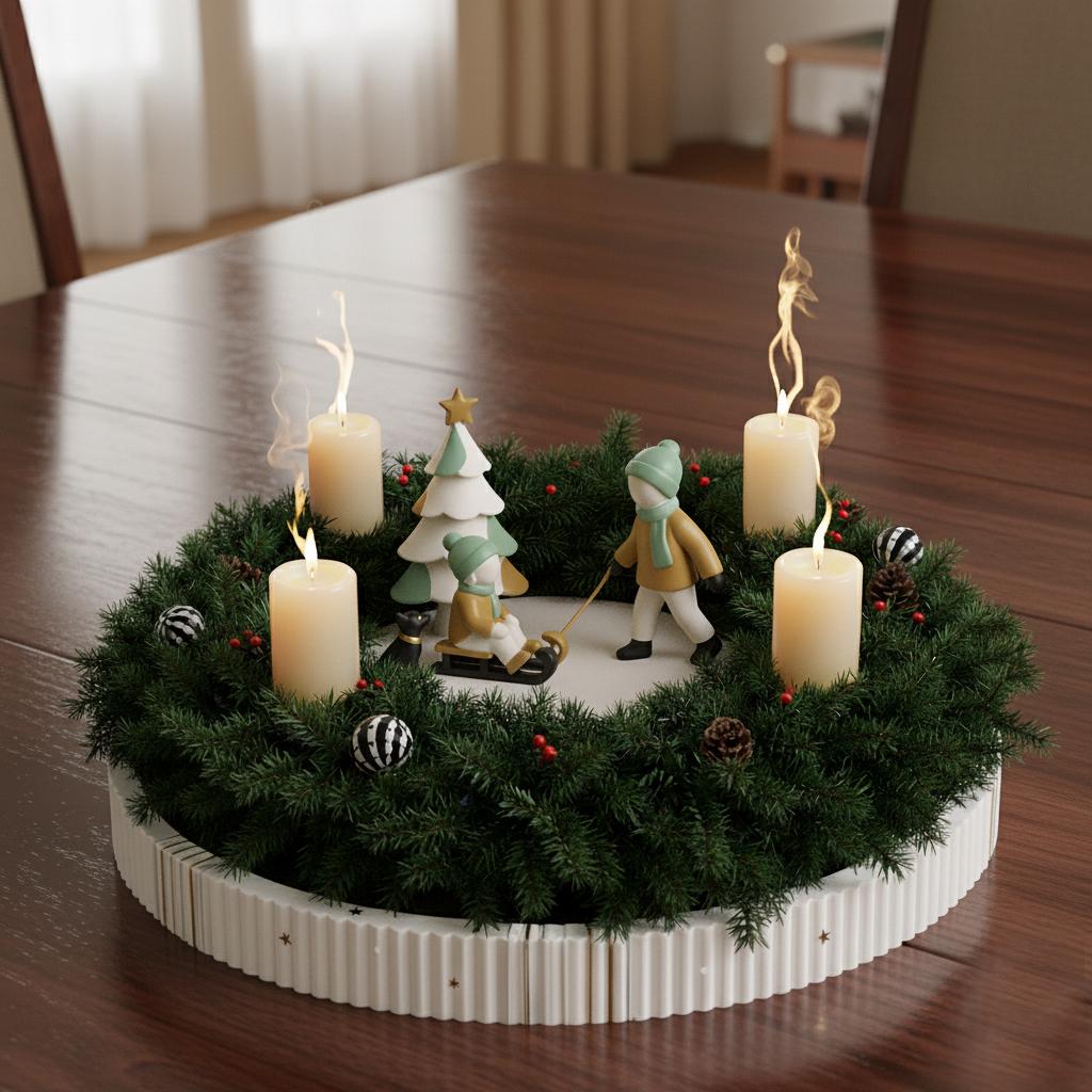 Advent plate with hand-painted 3D figures – sustainable winter decoration made of PLA and Raysin
