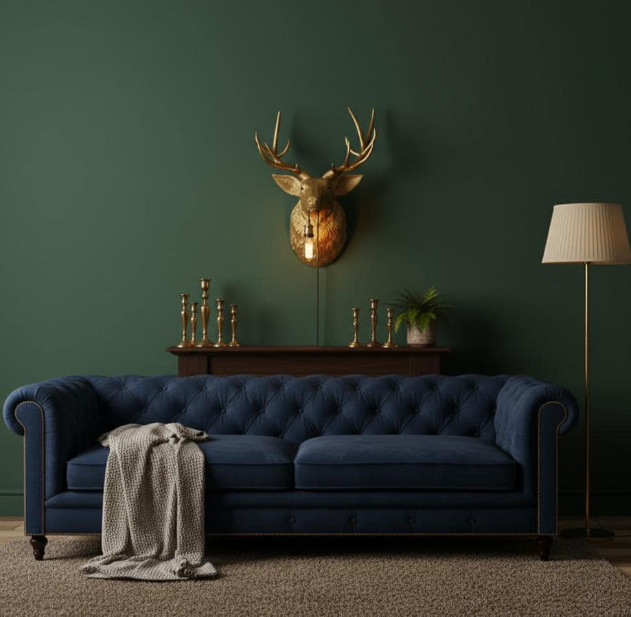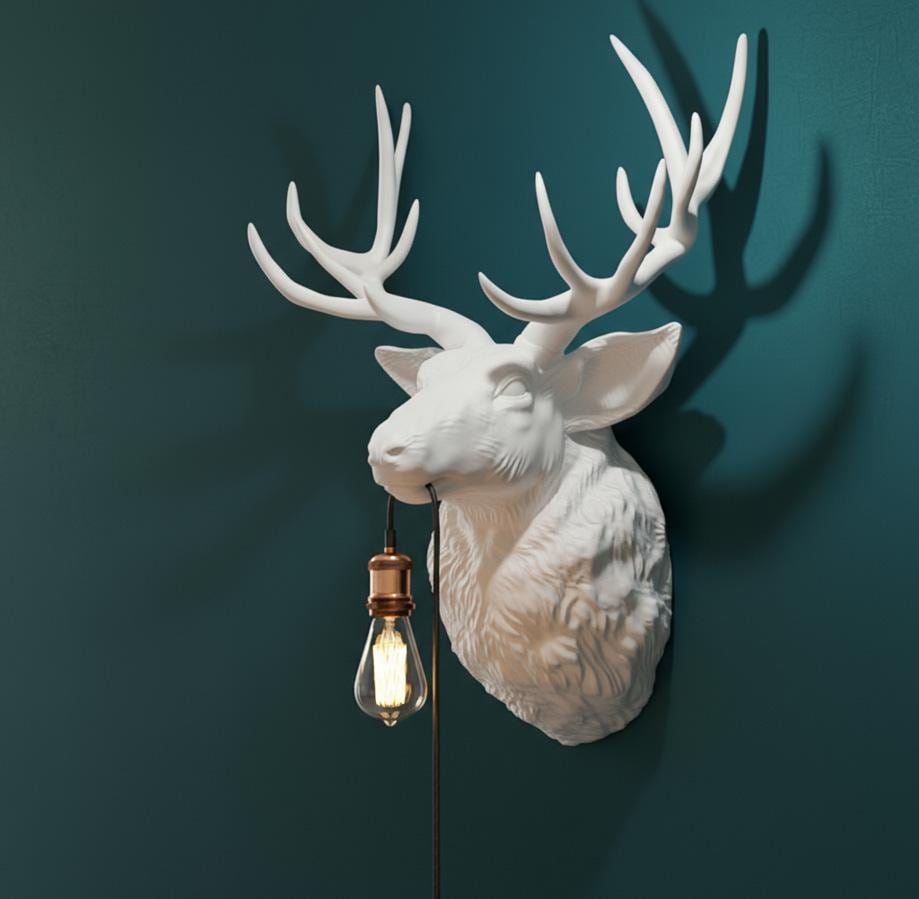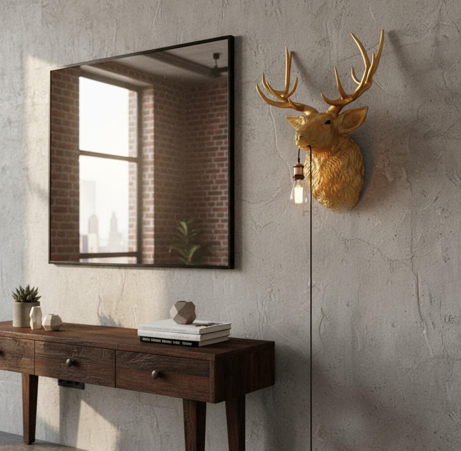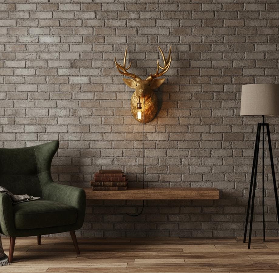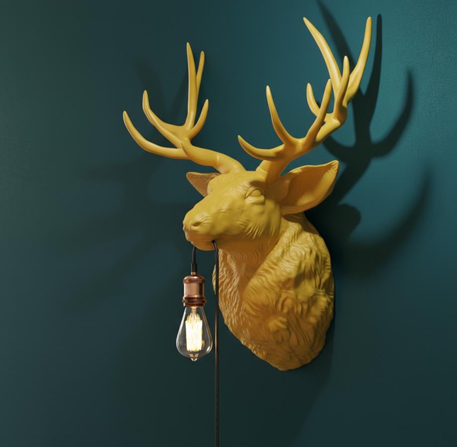 The sculpted deer head in a sophisticated gold tone makes a powerful statement on any wallβwhether in the living room, hallway, or modern loft. The soft light source creates a warm, atmospheric effect.
