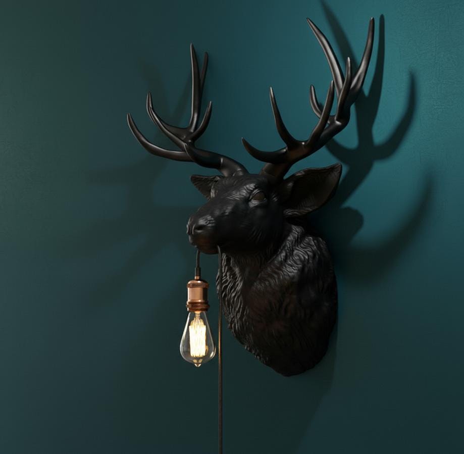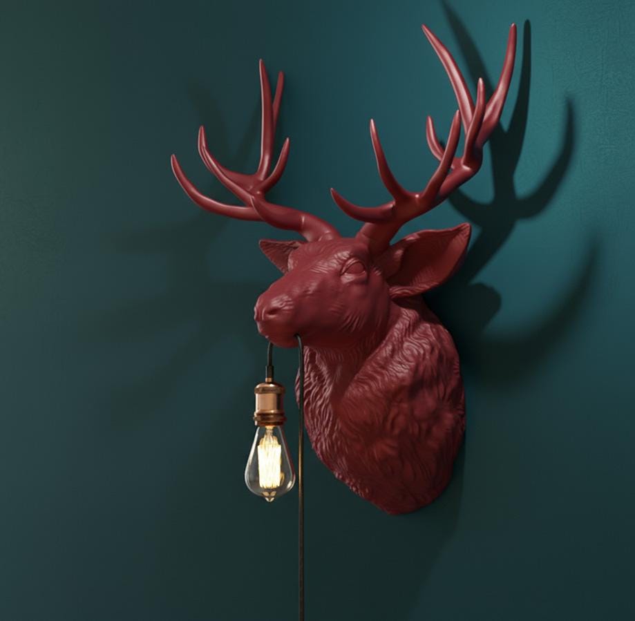 Golden deer head wall lamp β hand-painted, stylish designer wall decoration with light object